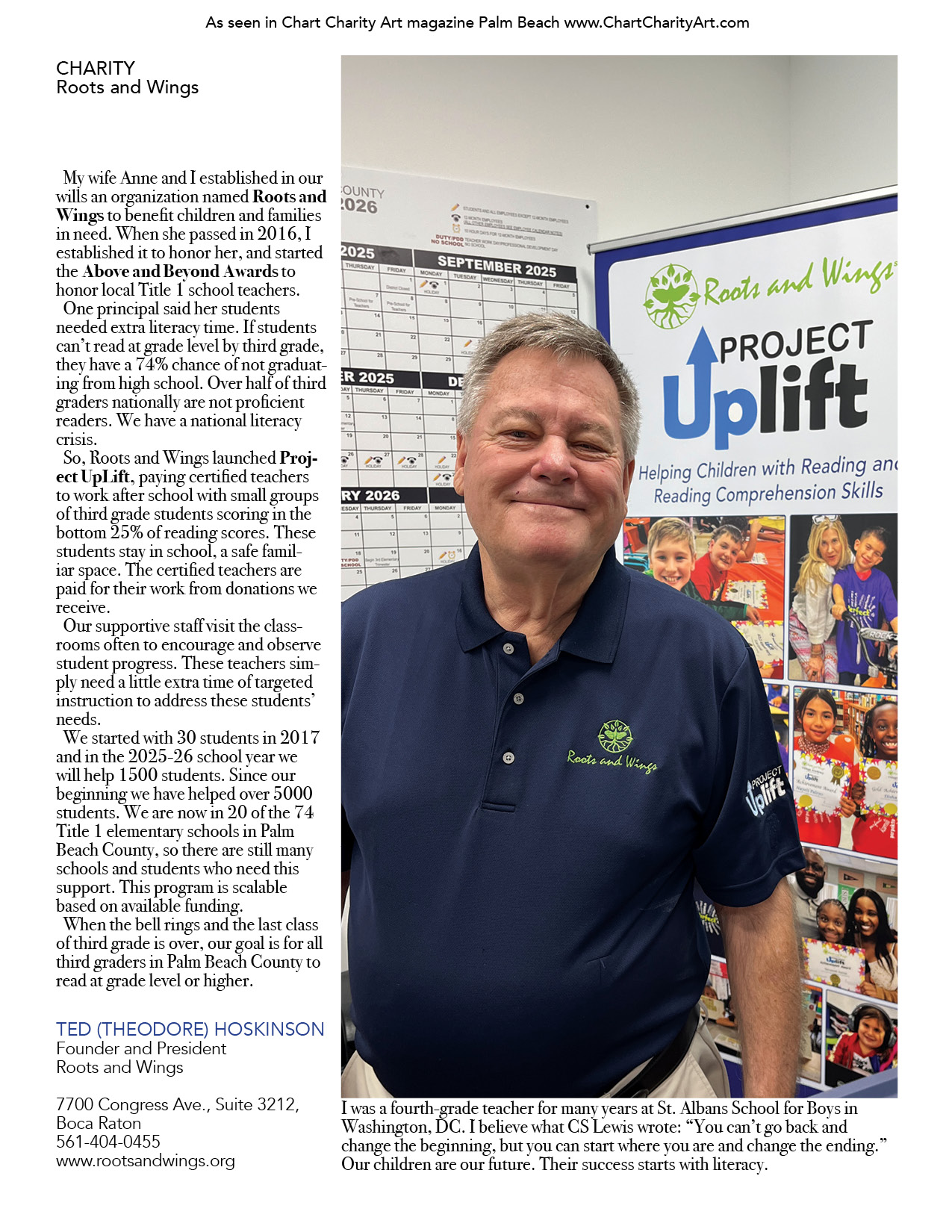 Chart charity art annual print magazine in Palm Beach, Florida features our unique “Charticles” on philanthropists, charities, fine artists, art shows, authors, book signing events,